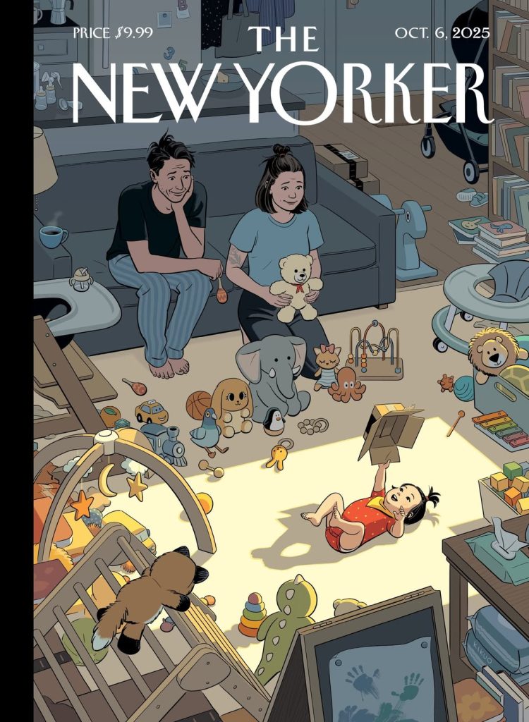On the cover of the October 2025 edition of The New Yorker, an infant lies joyfully on the floor, completely absorbed in play with a cardboard box. The parents, perched on the couch, watch with a mix of amusement and amazement. A simple box—not a learning toy, not a stuffed animal, just a box—has captured their baby’s full attention. This is a powerful reminder that children don’t need fancy toys or structured activities to ignite their curiosity. What they need is time, space, and permission to imagine.